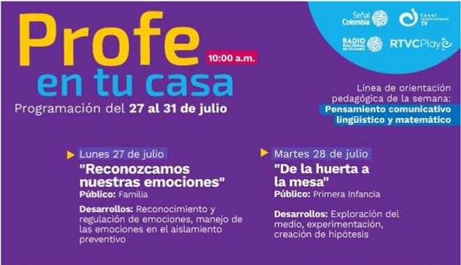El Ministerio de Educación Nacional, MinTIC y RTVC, diseñaron el programa “Profe en tu casa” para responder al desafío educativo actual. Es por esto, que el proyecto de Escuela de Padres de la I.E. Combia aprovechará esta herramienta y desarrollará la actividad correspondiente al mes de AGOSTO invitando a todos los padres de familia de los estudiantes desde el grado transición a once, en todas nuestras sedes educativas a ver el programa del día Lunes 27 de Julio, a las Leer más…