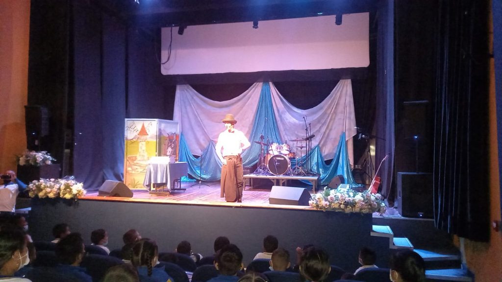 Los estudiantes del programa de danzas de jornadas complementarias de la Institución Educativa COMBIA realizaron el.dia 11 de mayo de 2022 una salida pedagógica a las instalaciones del Teatro Comfamiliar, con el.objetivo de disfrutar de una programación variada que constó con: espectáculo de magia, teatro y música, veamos algunas de las imágenes producto de este evento.