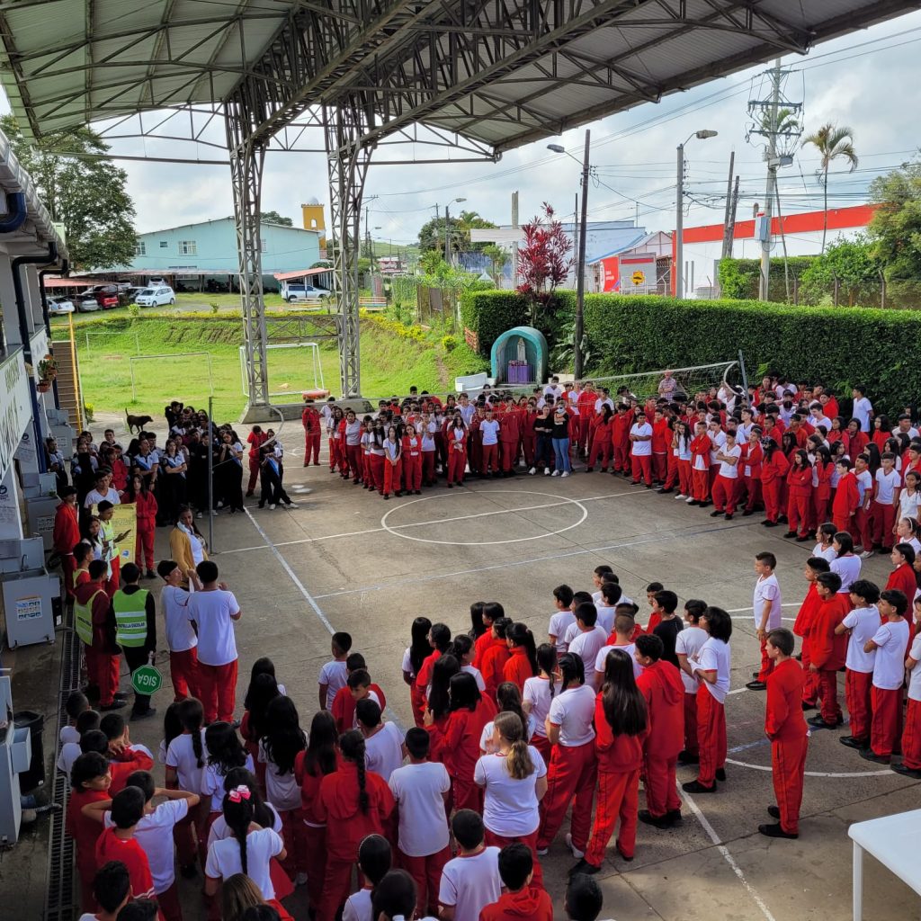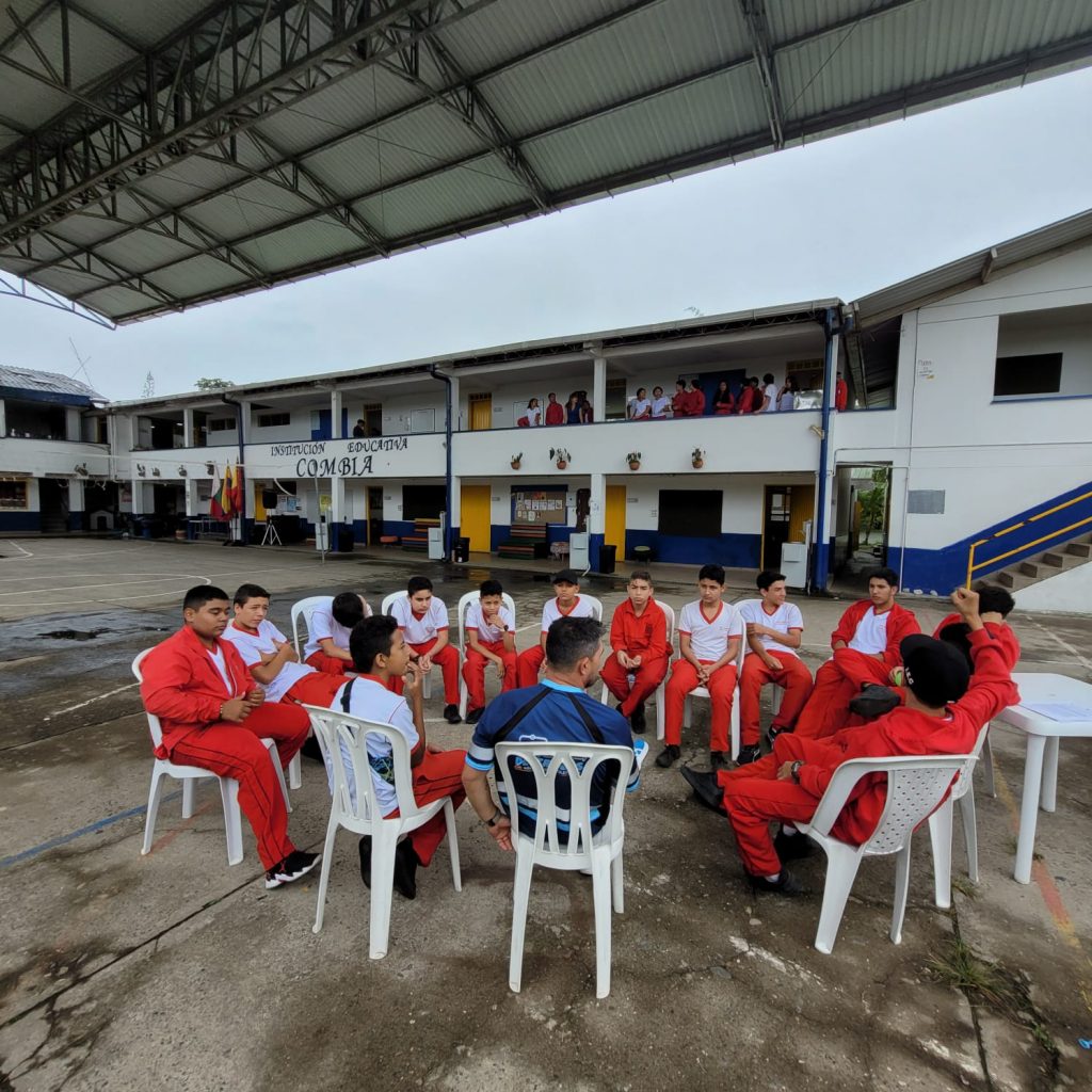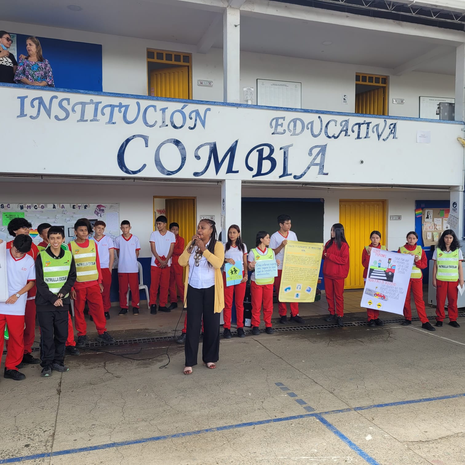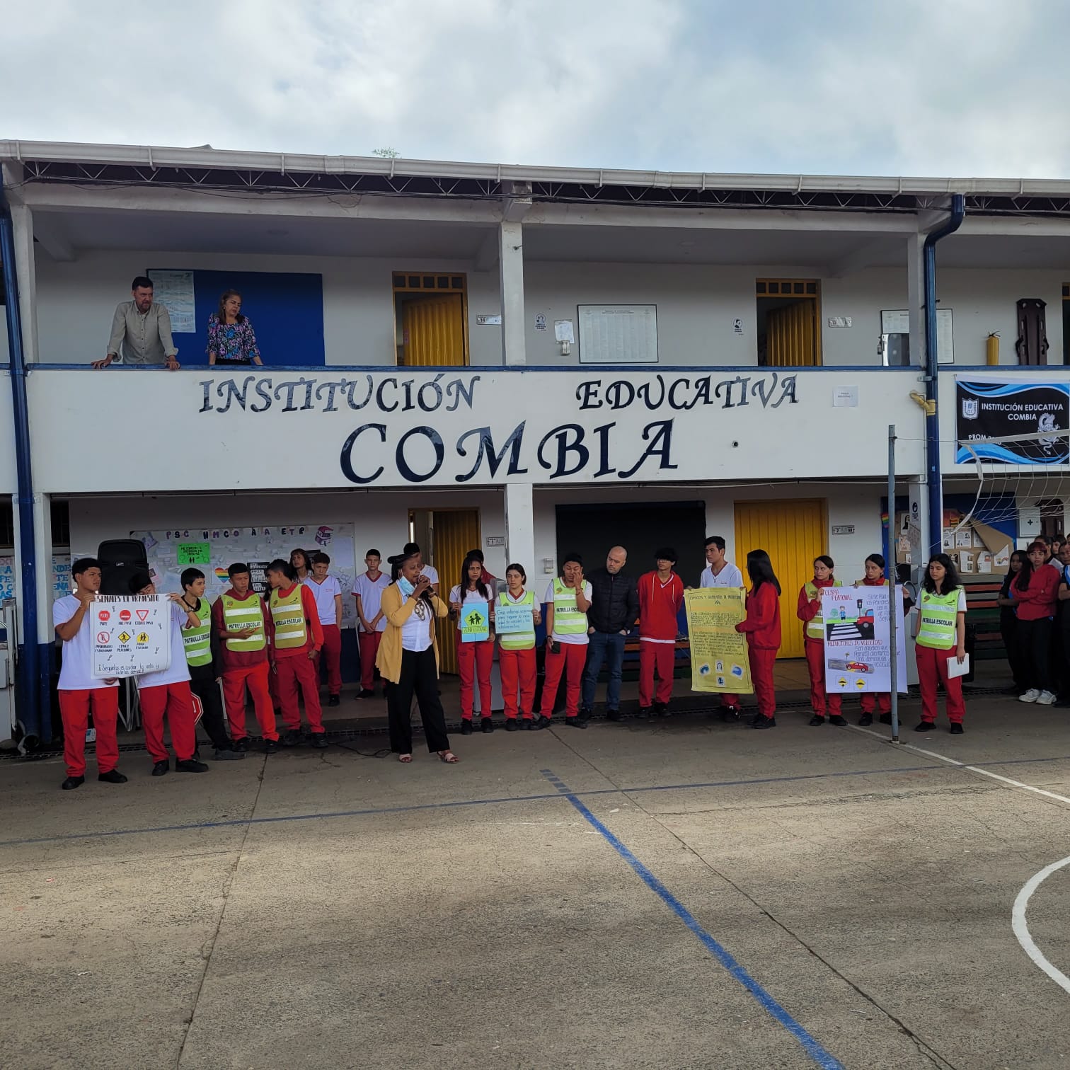 Para esta formación se aprovechó la ocasión para reunir a toda la comunidad educativa y brindar la orientación y asesoría respectiva, para ello cada uno de los equipos trajo carteleras e imágenes alusivas al tema y con ellas le explicaron a los asistentes la forma correcta como se deberían comportar los estudiantes en la vía y luego hicieron el simulacro con otros estudiantes en relación con la importancia de transitar por la cebra, además de reconocer e identificar los estudiantes que están prestando su servicio social en seguridad vial y el respeto a las normas que pretenden impartir, además de reconocer las paletas para parar o seguir.