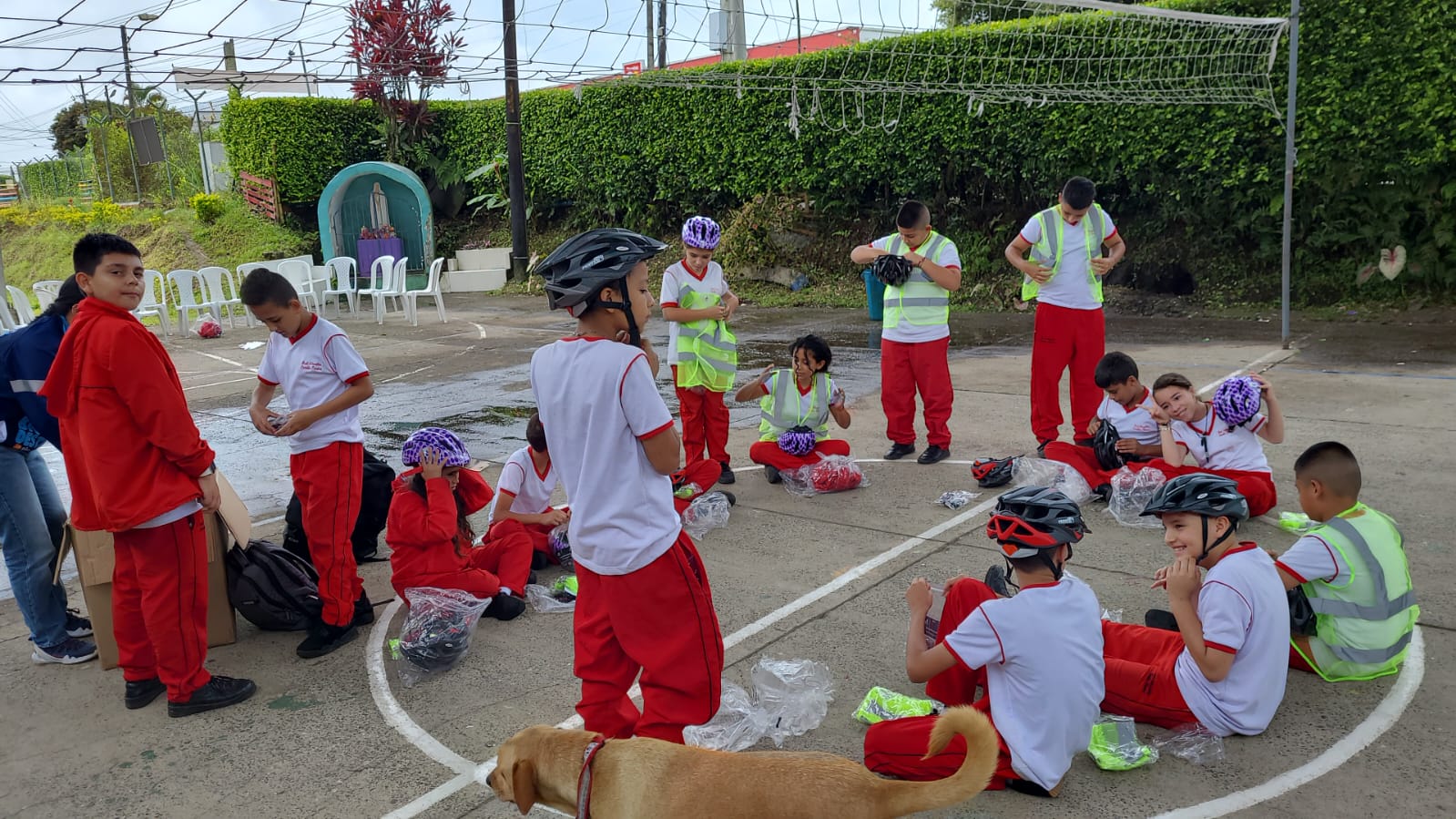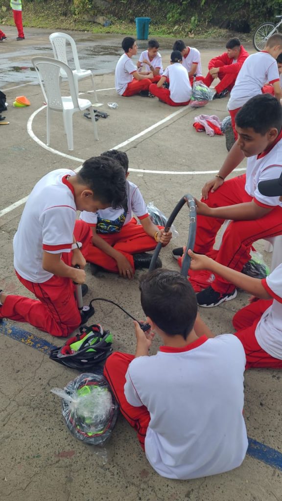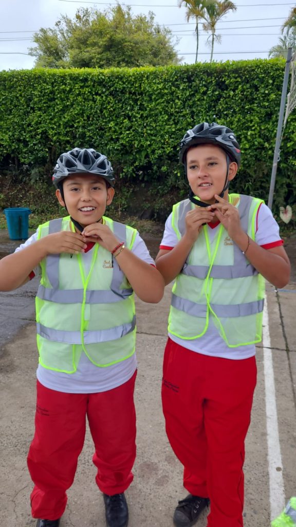 Asimismo, a los estudiantes que previamente se identificaron que poseían bicicleta y que estaban viniendo al colegio en ellas y recibieron la capacitación en formación vial se les entregó un Kit para uso del ciclista que incluía: casco, dos juegos de luces (blanca y roja) para la bicicleta (delantera y trasera), chaleco antireflectivo y un traga luz.